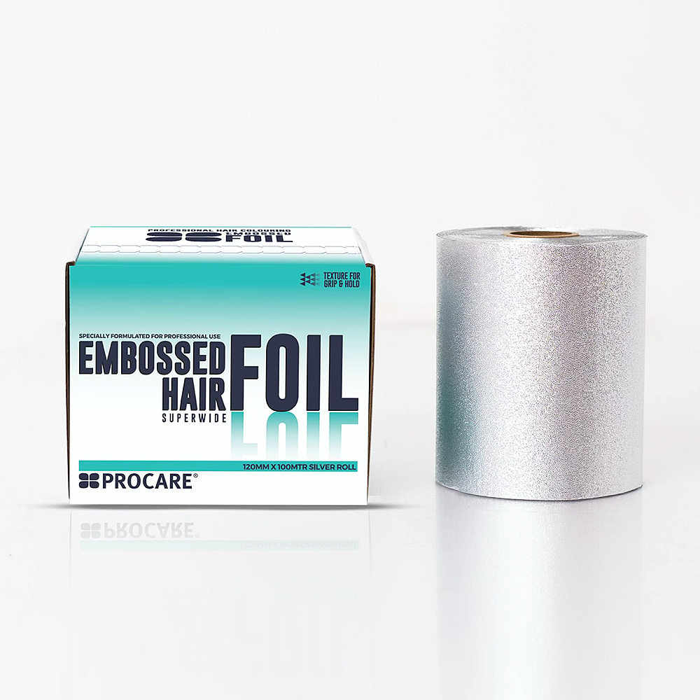 Procare new Embossed premium Superwide Foil Roll is designed for the hairdressers who prefer an embossed texture over smooth foil, measuring 100m in length.
